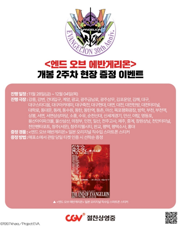 °³ºÀ 2ÁÖÂ÷ÀÎ 11¿ù 28ÀÏ(±Ý)ºÎÅÍ Àü±¹ ÁÖ¿ä ±ØÀå¿¡¼ '¿£µå ¿Àºê ¿¡¹Ý°Ô¸®¿Â' Æ÷½ºÅÍÀÇ ºñÁÖ¾óÀÌ µé¾î°£ ÀϺ» ¿À¸®Áö³Î Á÷¼öÀÔ ½º¸¶Æ®Æù ½ºÆ¼Ä¿¸¦ ¼±Âø¼øÀ¸·Î ÁõÁ¤ÇÑ´Ù. À̹ø ±ÂÁî´Â 1997³â ÀϺ» ù °³ºÀ ´ç½Ã Æ÷½ºÅÍÀÇ ¸ð½ÀÀ» ±×´ë·Î ´ã°í ÀÖ¾î ÆÒµéÀÇ ¼ÒÀå ¿å±¸¸¦ ÀÚ±ØÇÒ ¿¹Á¤ÀÌ´Ù. 2ÁÖÂ÷ ƯÀü¿¡ ´ëÇÑ ÀÚ¼¼ÇÑ ³»¿ëÀº ÀÚ¼¼ÇÑ ³»¿ëÀº CGV ȨÆäÀÌÁö ¹× APPÀ» ÅëÇØ È®ÀÎÇÒ ¼ö ÀÖ´Ù.