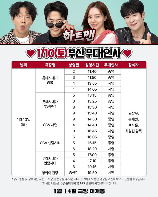 ¿À´Â 1¿ù 14ÀÏ °³ºÀÇÏ´Â ¿µÈ 'ÇÏÆ®¸Ç'ÀÌ °³ºÀ ÀüÁÖ ¹× °³ºÀÁÖ ¹«´ëÀλ縦 È®Á¤Çß´Ù. 2026³â »õÇØ ±ØÀå°¡¿¡ ¶ß°Å¿î ¿¡³ÊÁö¸¦ ºÒ¾î³Ö¾î ÁÙ ±Ç»ó¿ì, ¹®Ã¤¿ø, Ç¥ÁöÈÆ°ú ÇÔ²² ÃÖ¿ø¼· °¨µ¶±îÁö Âü¼®ÇØ ¿µÈ 'ÇÏÆ®¸Ç'À» °ü¶÷ÇÏ·¯ ¿Â °ü°´µé°ú ¶æ±íÀº ½Ã°£À» º¸³¾ ¿¹Á¤ÀÌ´Ù.