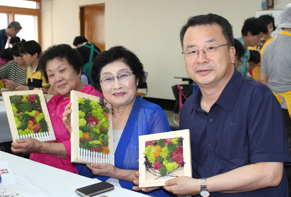 À̳¯ Çöó¿ö °ø¿¹ üÇè¿¡ Âü°¡ÇÑ ¾î¸£½ÅµéÀº ½ÅºñÀÇ ½Ä¹° ½ºÄµð¾Æ¸ð½º(¼ø·ÏÀ̳¢)¸¦ ÀÌ¿ëÇØ ¾×ÀÚ¸¦ ¸¸µé¾ú´Ù. ÀÌ È°µ¿Àº ¾î¸£½ÅµéÀÇ ÁýÁß·ÂÀ» Çâ»ó½Ã۰í, ¼Õ¹ß ±â´Éȸº¹À» µµ¿ò°ú µ¿½Ã¿¡ »ýȰÀÇ È°·Â¼Ò°¡ µÈ´Ù.