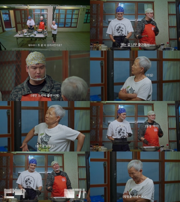 ÀÌÀå¿ì¿Í Á¤ÇõÀÌ ¿ä¸®¿¡ ÁýÁßÇÏ´Â »çÀÌ ³ªÅ¸³ ÁÖÀÎ ÇÒ¸Ó´Ï´Â ¡°¸ÀÀÖ¾î º¸¿©¿ä. µÎ ºÐÀº ¿ä¸®»çÀΰ¡¿ä?¡±¶ó°í ¹°¾ú°í, ÀÌÀå¿ì´Â ¡°¾Æ´Ï¿¡¿ä. ÀúÈñ°¡ ¸Ô´Â °É ³Ê¹« ÁÁ¾ÆÇϴµ¥ Àú´Â ¹è¿ì°í, ÀÌ Ä£±¸´Â ¸ðµ¨ÀÌ¿¡¿ä. Àú´Â ´ë¸¸ µå¶ó¸¶µµ Âï¾ú¾î¿ä¡±¶ó°í ÀüÇÑ´Ù. ±×·¯ÀÚ ÁÖÀÎ ÇҸӴϰ¡ ¼ÕÀ¸·Î ¸öÀÇ ¶×¶×ÇÔÀ» Ç¥ÇöÇß°í, ÀÌÀå¿ì°¡ ¸Ú½Àº ¿ôÀ½À» Áö¾î º¸ÀÌ¸ç ¡°Àú´Â ÆÎÆÎ ¾×ÅÍ, ÇõÀÌ´Â ³È³È ¸ðµ¨. ¾Æ±î ¡®ÆÎÆÎ¡¯À̶ó´Â ¸»À» ¹è¿ü¾î¿ä¡±¶ó°í ¸»ÇØ ¿ôÀ½À» ¾È±ä´Ù.