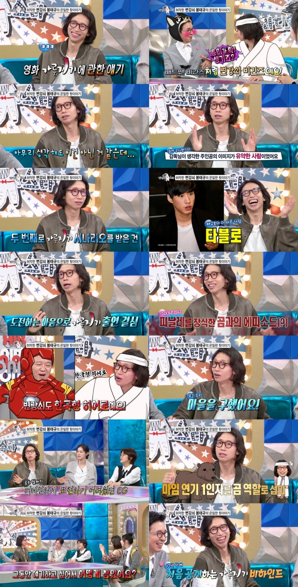 ºÀű԰¡ 17³â ¸¸¿¡ Ç®¾î³õ´Â ¿µÈ ¡®°¡·çÁö±â¡¯¿¡ ´ëÇÑ ÅäÅ©·Î ½ºÆ©µð¿À¸¦ ¿ôÀ½¹Ù´Ù·Î ¸¸µé¾ú´Ù. ¡®°¡·çÁö±â¡¯´Â º¯°¼èÀÇ Åº»ý ºñȸ¦ ´Ù·é Äڹ̵𠿵ȷÎ, ºÀű԰¡ Çã¾àÇÑ º¯°¼è ¿ªÀ» ¸Ã¾Æ ÈÁ¦¸¦ ¸ðÀº ÀÛǰÀÌ´Ù. ºÀűԴ ¡®°¡·çÁö±â¡¯¸¦ ¼³¸íÇÏ¸ç ¡®º¯°¼è ºñ±äÁ¶ó°í ¸»ÇØ ¿ôÀ½À» ÀھƳ´Ù.