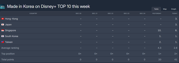 [JTN´º½º Á¤¼¼¿µ ±âÀÚ] µðÁî´Ï+ÀÇ ¿À¸®Áö³Î ½Ã¸®Áî '¸ÞÀ̵å ÀÎ ÄÚ¸®¾Æ'°¡ 12¿ù26ÀÏ ±âÁØ OTT Ç÷§Æû ³» ÄÜÅÙÃ÷ ½Ãû ¼øÀ§ Áý°è »çÀÌÆ®ÀÎ Flixpatrol(Çø¯½ºÆÐÆ®·Ñ) µðÁî´Ï+ TV¼î ºÎ¹® Çѱ¹ ¹× ´ë¸¸ 1À§, ÀϺ» ¹× È«Äá 3À§, ½Ì°¡Æú 6À§, ½ºÆ®¸®¹Ö Ç÷§Æû Hulu(ÈÇ·ç)¿¡¼ ¹Ì±¹ 9À§¸¦ ´Þ¼ºÇÏ¸ç ±Û·Î¹ú 3À§¸¦ ´Þ¸®°í ÀÖ´Ù.