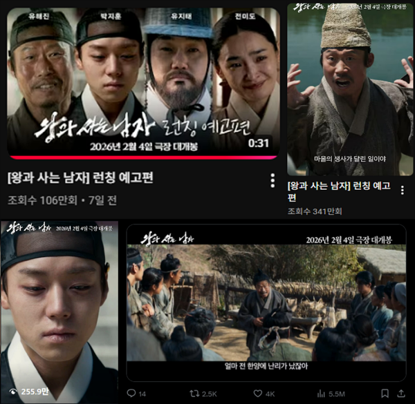 [JTN´º½º Á¤¼¼¿µ ±âÀÚ] 1457³â û·ÉÆ÷, ¸¶À»ÀÇ ºÎÈïÀ» À§ÇØ À¯¹èÁö¸¦ ÀÚóÇÑ ÃÌÀå°ú ¿ÕÀ§¿¡¼ ÂѰܳª À¯¹èµÈ ¾î¸° ¼±¿ÕÀÇ À̾߱⸦ ±×¸° ¿µÈ '¿Õ°ú »ç´Â ³²ÀÚ'°¡ ·±Äª ¿¹°íÆí °ø°³ ÀÌÈÄ Æø¹ßÀûÀÎ ¹ÝÀÀÀ» ºÒ·¯ÀÏÀ¸Å°¸ç 2026³â ù ¹øÂ° ±â´ëÀÛÀ» ÇâÇÑ ¶ß°Å¿î °ü½ÉÀ» ÀÔÁõÇß´Ù.