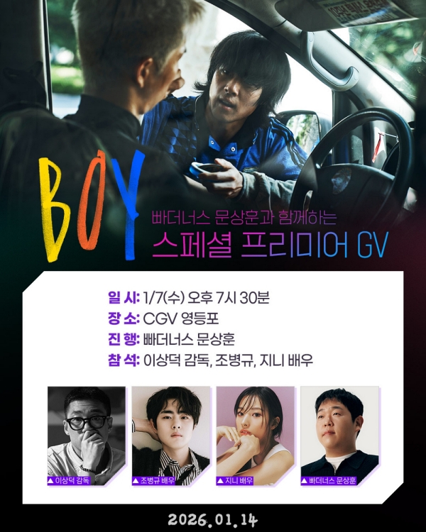 ºü´õ³Ê½º ¹®»óÈÆ°ú ÇÔ²²ÇÏ´Â 'º¸ÀÌ' ½ºÆä¼È ÇÁ¸®¹Ì¾î GV´Â 'º¸ÀÌ'ÀÇ °³ºÀ Àü ÁøÇàµÇ¾î ¿µÈ¸¦ ¸ÕÀú ¸¸³ªº¼ ¼ö Àִ Ưº°ÇÑ ±âȸ¸¦ Á¦°øÇÑ´Ù. ´Ù°¡¿À´Â 1¿ù 7ÀÏ(¼ö) Àú³á 7½Ã 30ºÐ CGV ¿µµîÆ÷¿¡¼ ¿µÈ »ó¿µ ÈÄ ºü´õ³Ê½º ¹®»óÈÆÀÌ ÁøÇàÀ» ¸Ã°í 'º¸ÀÌ'ÀÇ ÀÌ»ó´ö °¨µ¶, Á¶º´±Ô, Áö´Ï°¡ Âü¼®ÇØ ºü´õ³Ê½º ¹®»óÈÆ°ú ¿µÈ¿¡ °üÇÑ ´Ù¾çÇÑ À̾߱âµéÀ» ÇÔ²² ³ª´ ¿¹Á¤ÀÌ´Ù. 'º¸ÀÌ'ÀÇ ½ºÆä¼È ÇÁ¸®¹Ì¾î GV´Â ¿¹¸Å ¿ÀÇ ÈÄ ºü¸¥ ¼Óµµ·Î ¿¹¸Å°¡ ÀÌ·ïÁö¸ç ÇöÀç ¸ÅÁø ÀÓ¹ÚÀ¸·Î ÀÚ¼¼ÇÑ »çÇ×Àº CGV ȨÆäÀÌÁö¿Í ¾ÛÀ» ÅëÇØ È®ÀÎÇÒ ¼ö ÀÖ´Ù.